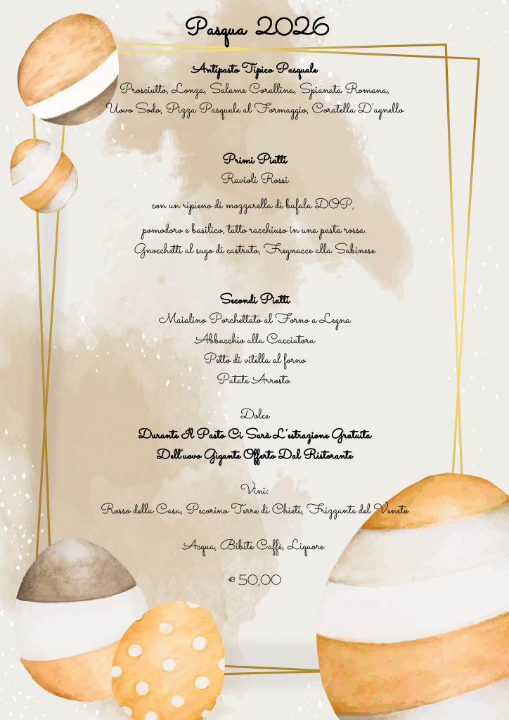 Uovo Sodo, Pizza Pasquale al Formaggio, Coratella..